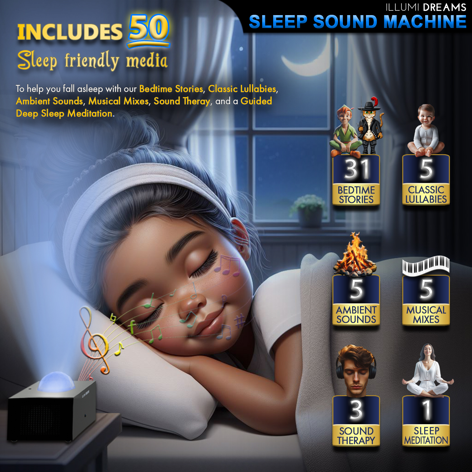 Get the most advanced multimedia star projector that will entertain everyone for hours. The 3D light show + our sleep friendly media will make bedtime fun! It also makes a great night light.